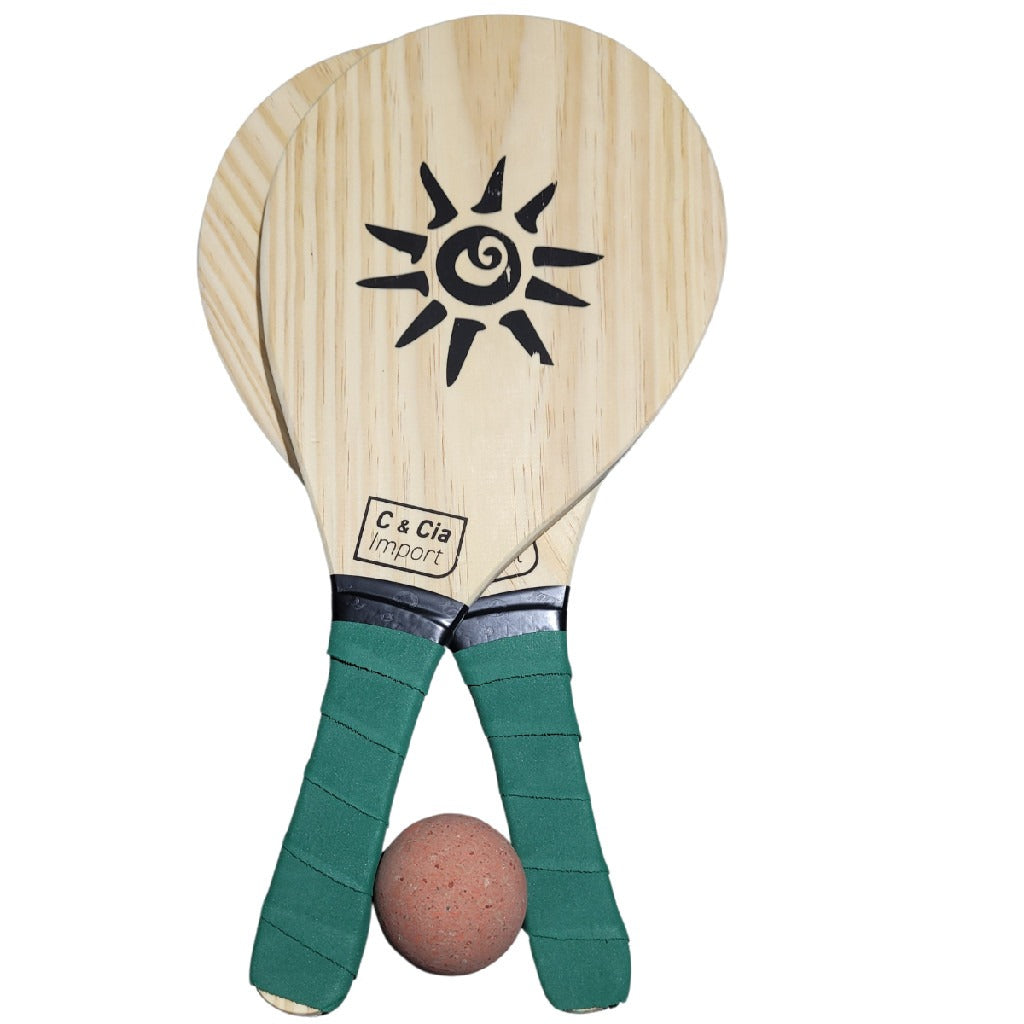 Kit Frescobol Tênis de Praia – 2 Raquetes de Madeira + Bola